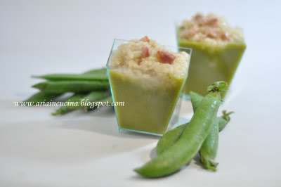 -Risi con pancetta su vellutata di bisi di Aria