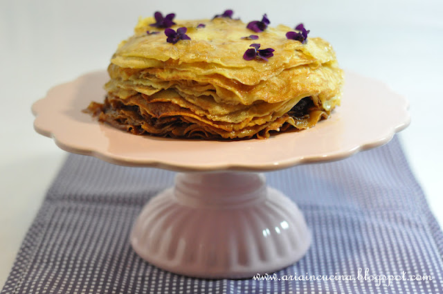 Mille Crepe Mignon con namelaka al cioccolato bianco, caramello salato e noci caramellate di Caris