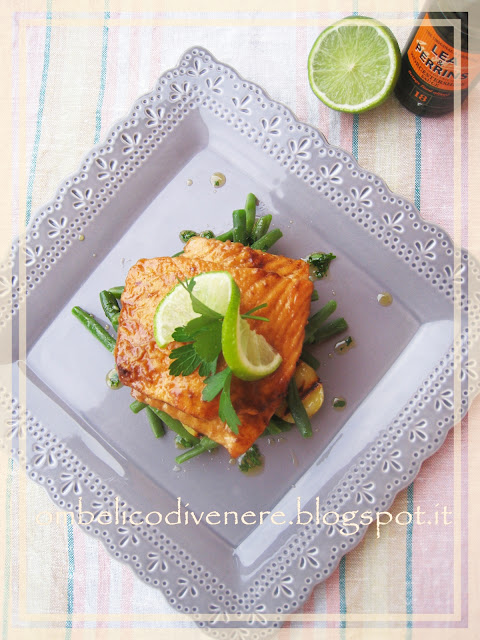 117) Le Scaloppine di Salmone in salsa worcester con verdure novelle al lime e zenzero di Tiziana