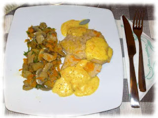 82) La Scaloppina di lombo di maiale al vino bianco con salsa allo zafferano e funghi trifolati di Terry (Agrodolce)