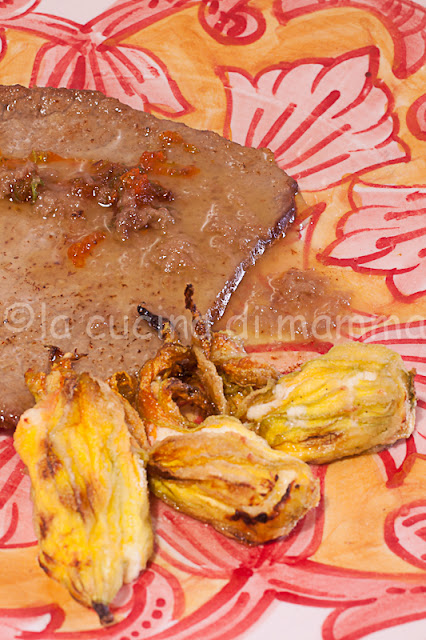 4) Le Scaloppine ai fiori di zucca e Moscato con fiori di zucca ripieni di Loredana