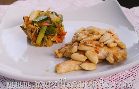 12)Le scaloppine di pollo alle mandorle con torrette di verdure allo zenzero di Valeria (murzillo saporito)