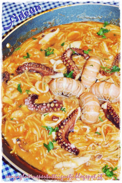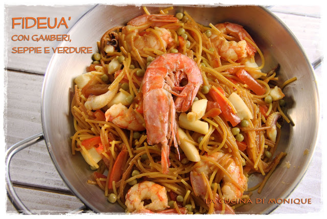 120) Fideuà alla rana pescatrice , gamberetti e zucchine di Gaia