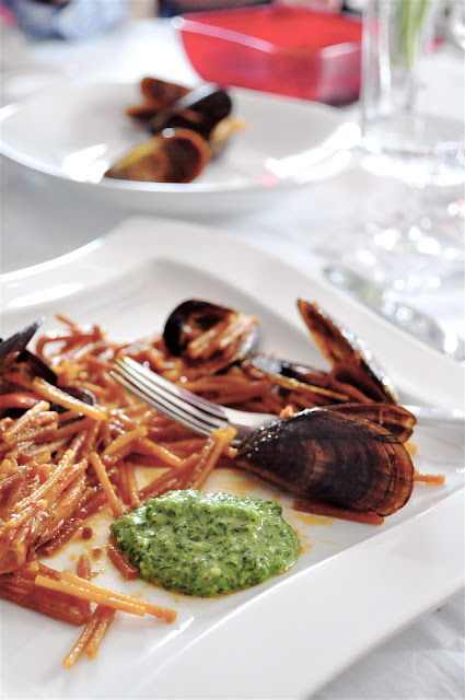 52) Fideuà con totani e cozze e pesto di aneto ed arancia di Sere