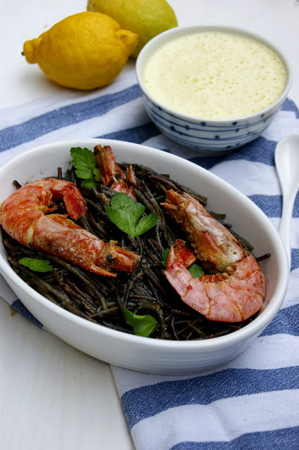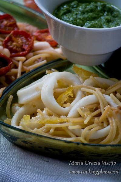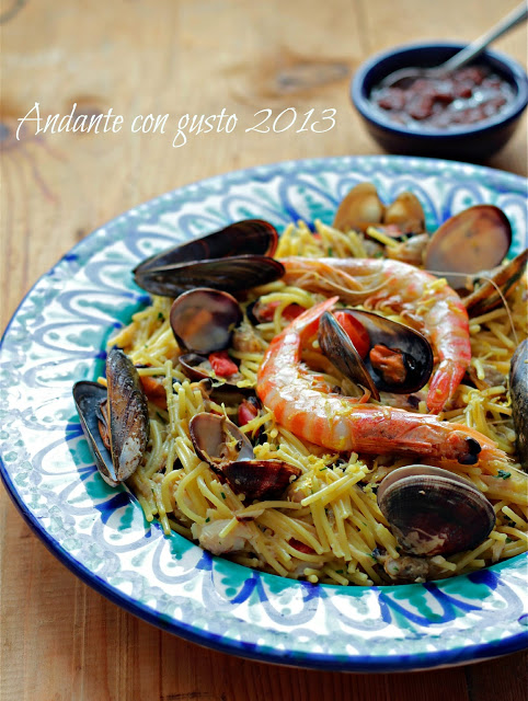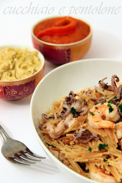 38)Fideuà con gamberi e seppie e salsa ai capperi dell’Artusi di Monique