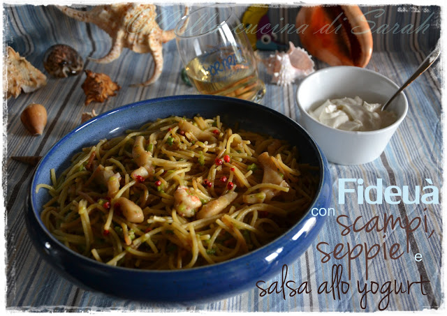 53) Fideuà con scampi seppie e salsa allo yogurt di Sarah