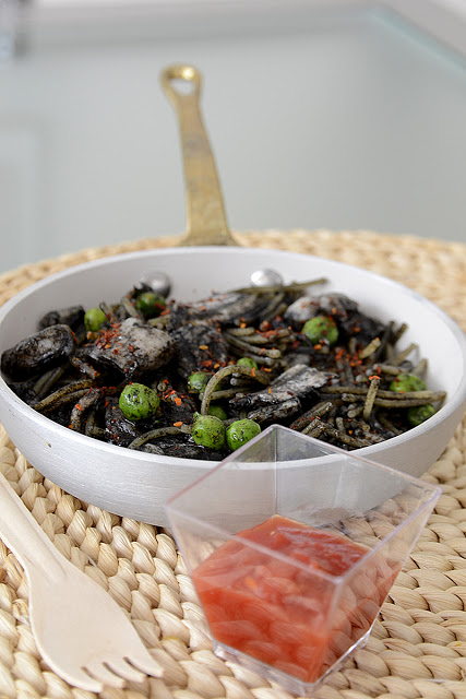 65) Fideuà in bianco e nero con salsa ai carciofi/ai pomodori secchi di Giulietta