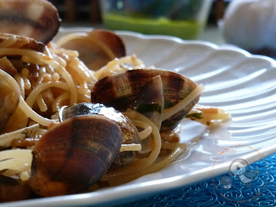 7) La fideuà ai calamari gamberi e vongole con pesto di mandorle di Ale