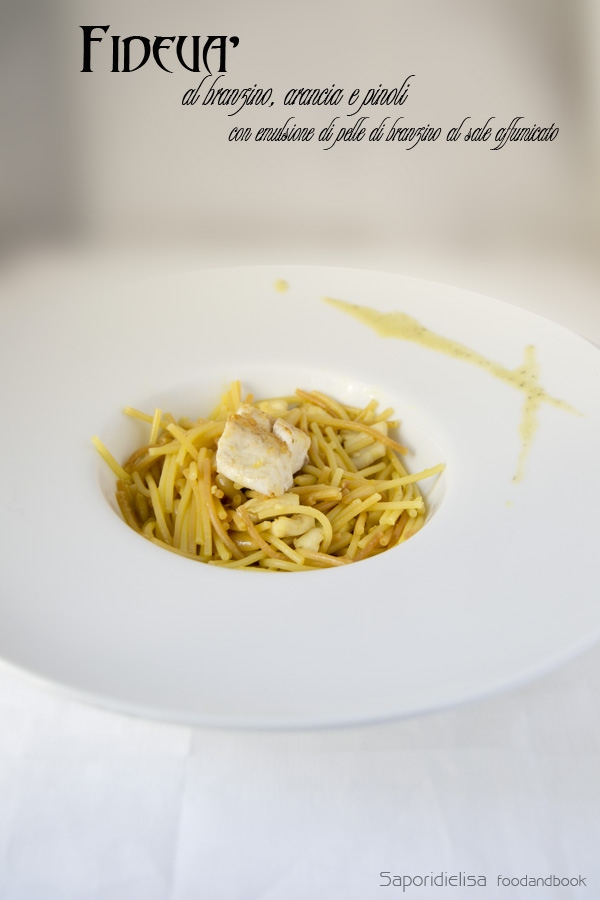 12) Fideuà al branzino ariancia e pinoli con emulsione alla pelle di branzino di Elisa