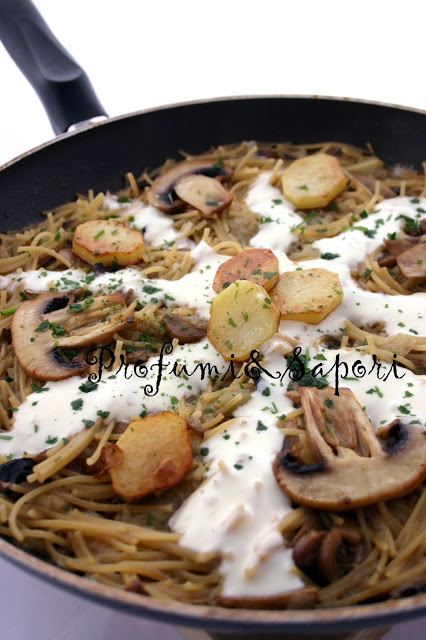 51) Fideuà con patate e funghi e salsa alla fonduta di Stefania