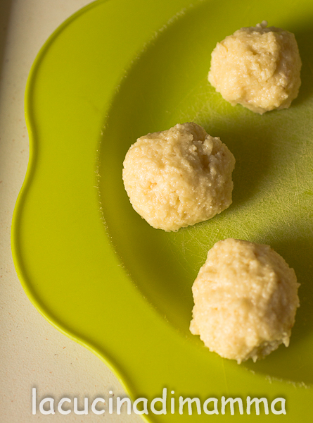 Amalgamare bene ( il composto non dovrà risultare eccessivamente molle ) e formare delle polpettine.