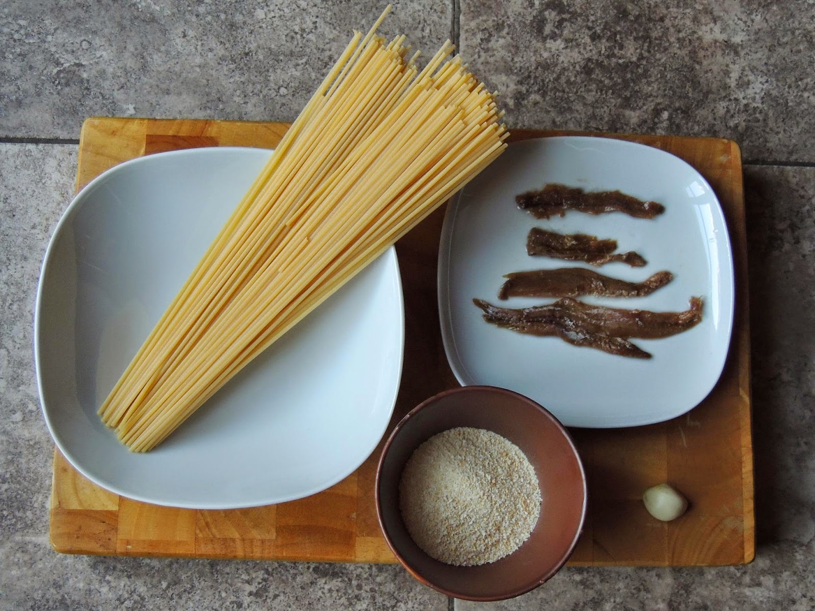 Cuocete gli spaghetti al dente, conditeli con l’olio acciugato, cospargeteli abbondantemente di pangrattato come se fosse parmigiano grattugiato, mescolate bene e servite.