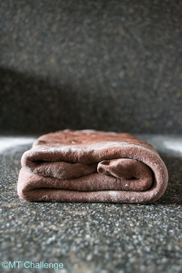 mettete nuovamente l’impasto sul piano di lavoro infarinato ruotandolo di 90°