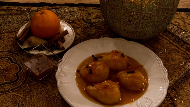 Metterle nello sciroppo di the e profumi e con grande delicatezza girandole ogni tanto lasciatele cuocere circa 15 minuti.