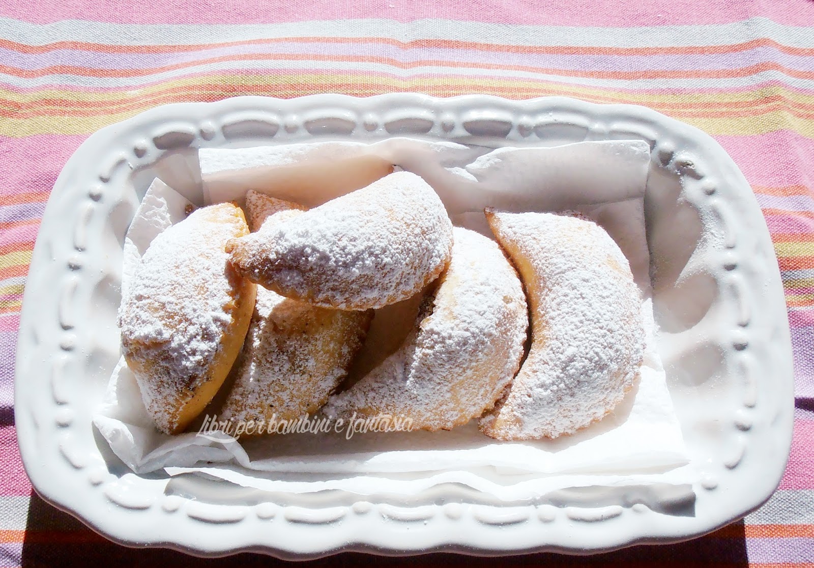 mezzelune, due o tre alla volta in olio di semi ben caldo. Scolale, tamponale